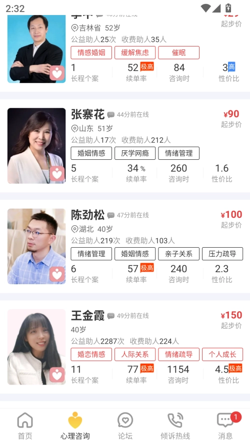 3、分钟计费模式弹性十足,无需担忧超时额外收费,1元即可开启倾诉,性价比高。