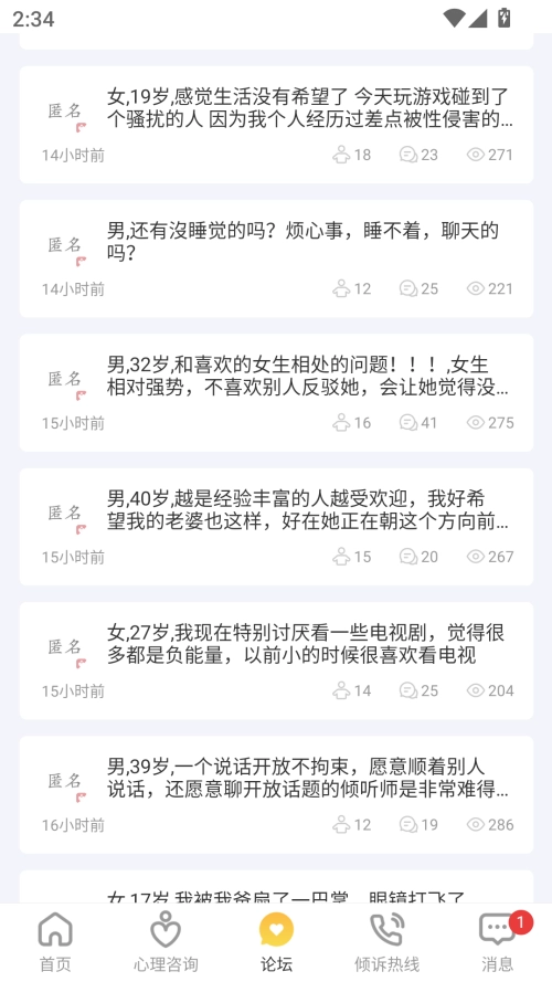 4、情感论坛:可免费发布各类心理相关问题与疑惑,专家免费答疑,用户积极参与互动交流;