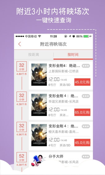影院实时影讯:影片上映、具体排片等情况一目了然;