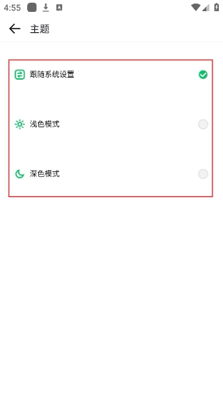 4、在主题界面中,你可以从“跟随系统设置”“浅色模式”“深色模式”这几个选项里任选其一,以此来切换应用的显示主题风格。