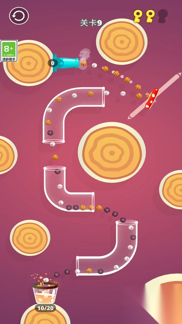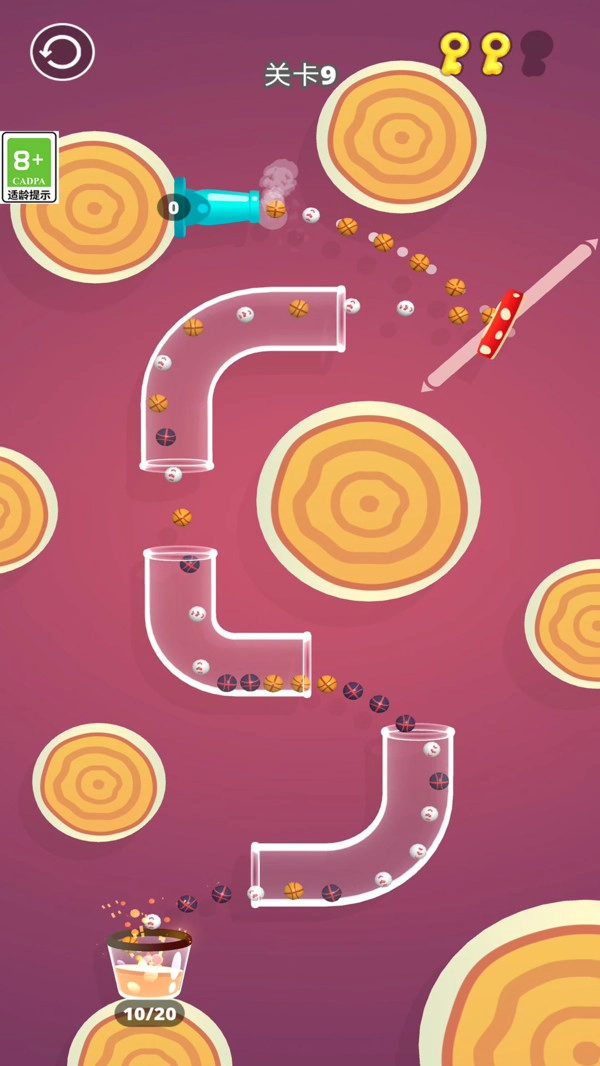 2、要是碰到多层管道以及旋转机关,需分步进行调整。首先要让球顺利通过机关,随后再做细微调整,使球对准桶,如此逐步推进。