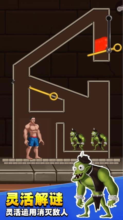 现在能帮到裤衩哥的只有你啦:移动空间里的横杆,借助空间内的水源或气体,帮裤衩哥跟小怪兽斗智斗勇、救援小伙伴,每成功救一次,都能拿到金币奖励!
