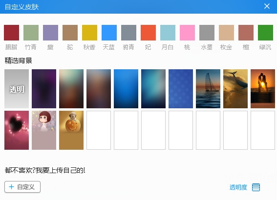 提供多种皮肤,可以自由换肤和调整背景透明色