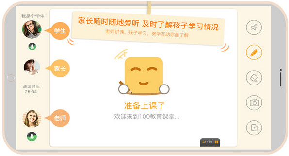 通过100教育免费课程,在线上课时,老师可以随时出题,学生通过答题卡回答后,老师可以即时统计答题情况,了解学生对知识点的掌握程度,即时批改后进行当堂点评。在课堂上,学生可以举手按顺序发言,老师可以指定同学发言,从而实现点名提问、学生发言、陈述介绍等线下课堂的教学模式。老师也可以指定若干学生进行小组讨论,通过实时语音沟通让学习讨论更加高效。同时,老师也可以开启文字讨论功能,让学生可以在文字讨论区提问、讨论及互动。此外,100教育客户端还专门增设了勋章和鲜花激励功能。学生参与答题就可以获得乖勋章,答对题目还可以获得赞勋章,每节课学生都可以通过收集勋章的方式进行答题竞赛。学生答对题目除勋章外同时可以获得鲜花,并且可以将鲜花赠送给自己喜欢的老师,老师获得的鲜花数会直接显示在老师的课堂资料中,作为老师受欢迎程度的一项参考标准。