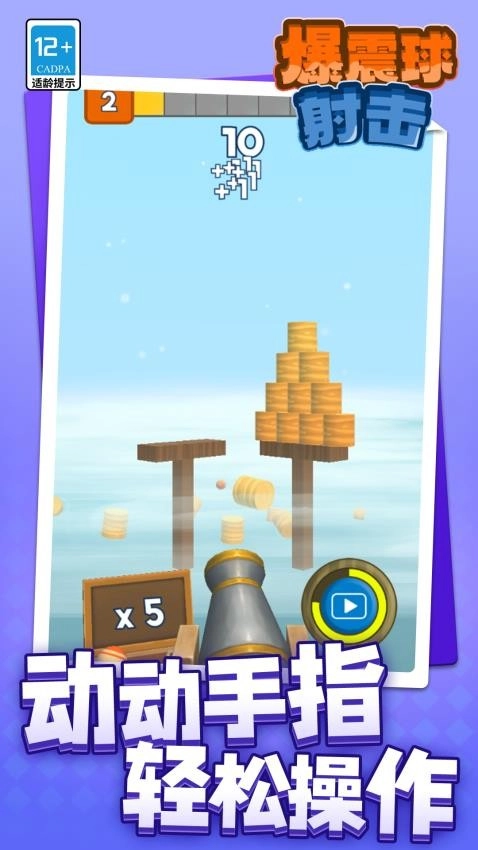 爆震球射击是一款十分有趣的休闲射击游戏。玩家要操控大炮轰击前方的物体,把它们全部摧毁就能获胜,游戏难度不高,所有玩家都能从中享受到畅快的闯关体验。通过观看广告可以获取免费炮弹,将炮弹装填进炮筒后,运用合适的发射技巧就能达到最佳攻击效果。在不同关卡里,玩家需要展现出色的操作能力,这样才能赢得重要奖励,同时还能摸索出更多技巧,借助这些技巧的助力,顺利通过更多关卡。要是你对这款游戏也感兴趣,那就快来体验一下吧!