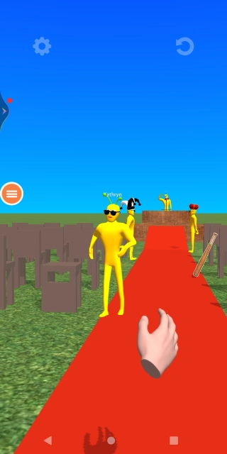 3. 如下图所示,关卡里还会有各类辅助道具出现,玩家能够操控手掌移动,拿起旁边的棒球棍来攻击黄色布娃娃。