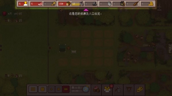 4、在观看一段剧情之后,你可以选择跳过,直接进入正式游戏环节,界面上方会显示你的资源数量与人口信息。