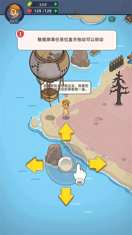 稍作等待让游戏资源加载完毕后,玩家将乘坐热气球降落到一座无人居住的荒岛上开启冒险。