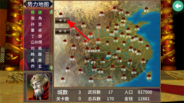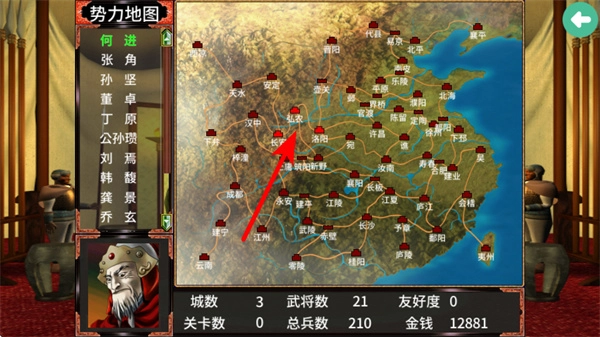 3、进入势力地图界面后,点击南皮这类目标城池,查看其所属势力、兵力部署等情况,以便为后续的策略规划提供参考。