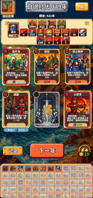 3、在每年结束前对资源与兵力的状态进行审视,提前预留出用于应对外敌的兵力,以此避免因资源过剩或者防御不足而陷入被动局面。