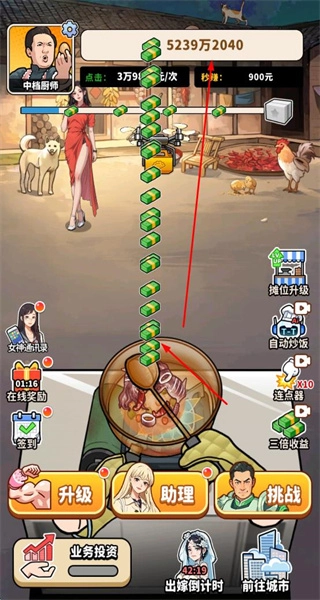 4、在经营主界面,点击操作锅具来获取收益,还能通过升级提高单次收益的数值,从而加快资源积累的速度。