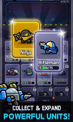 2、在游戏里扮演指挥官的角色,坚守住基地,并通过搭配不同的士兵阵容来开启作战行动