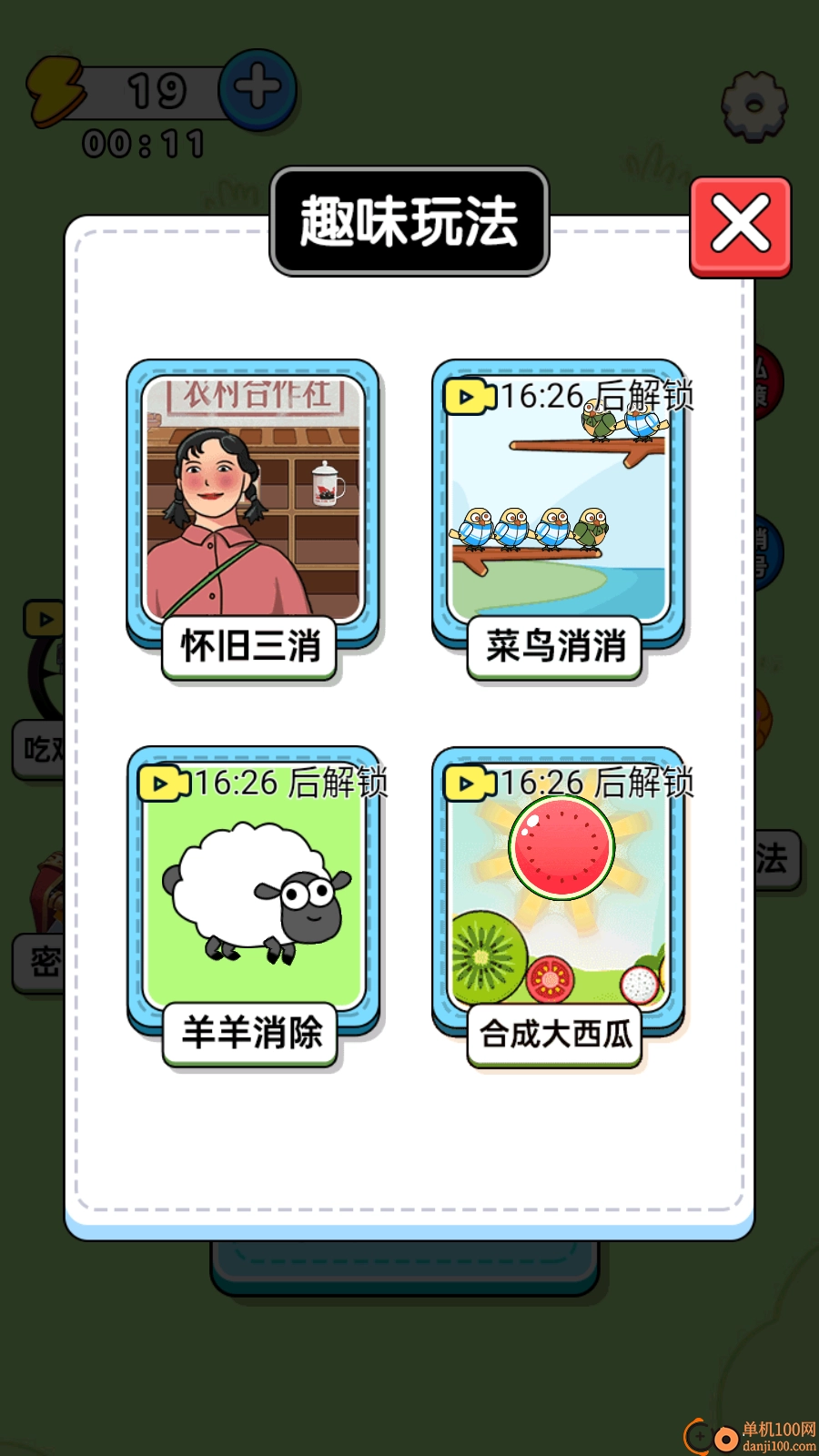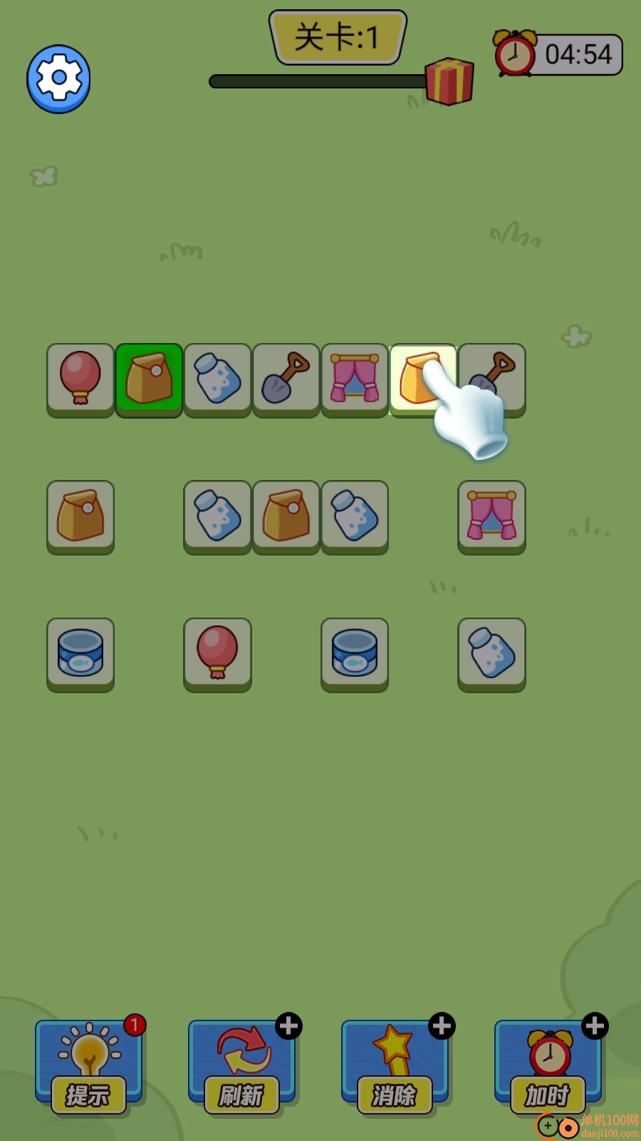 4、设有怀旧风格的三消玩法,点击画面里出现的相同物品即可自动消除