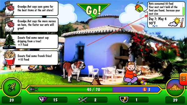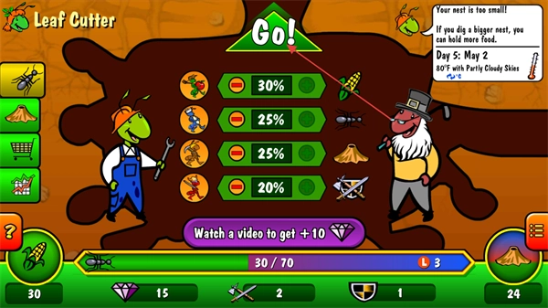 全程中文提示让玩法规则清晰易懂,新手无需额外攻略就能快速掌握操作要点,轻松开启蚂蚁族群的成长与战斗之旅。