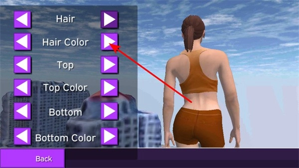 1、进入角色自定义界面后,点击Hair Color旁边的箭头按钮,就能切换头发的颜色,通过这种方式可以打造出具有个性化的角色外观