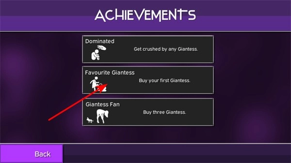 4、在成就界面,完成“Buy your first Giantess”任务即可解锁对应成就,达成条件为购买首个巨人角色。