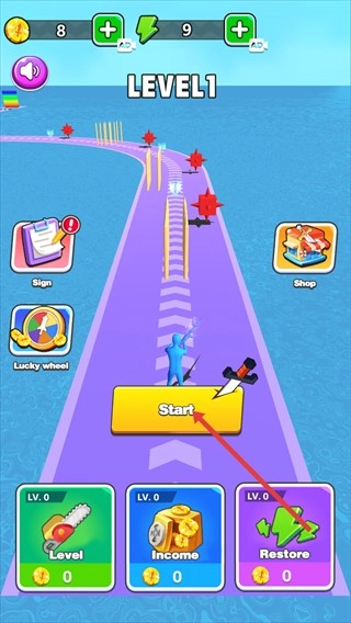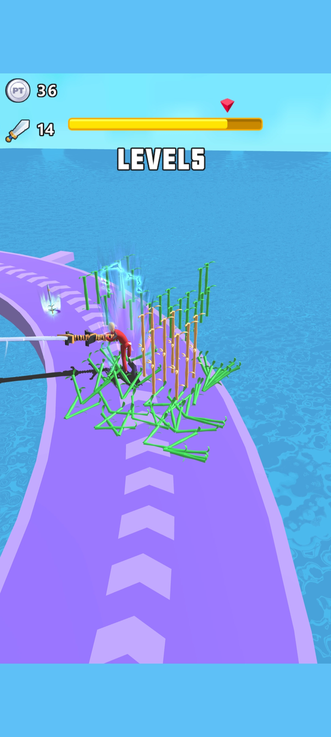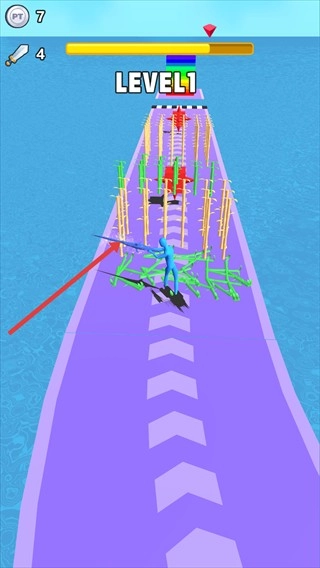 1. 前进时,通过左右滑动手指来收集更多的剑。