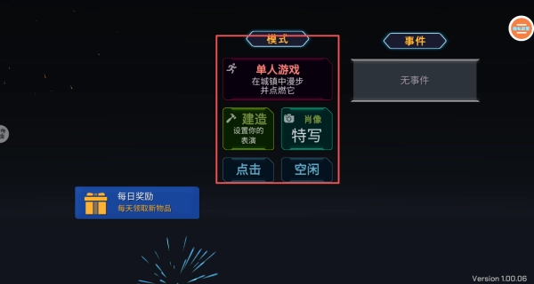 进入游戏后选择对应的模式即可:单人挑战模式可以让玩家专注于烟花燃放的沉浸体验;建造模式则支持自由设计完整的表演流程,两种模式能适配不同玩家的需求。
