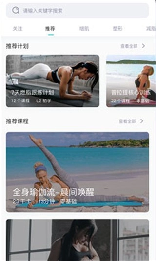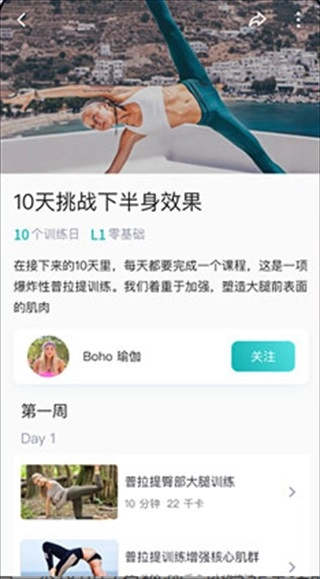 3、点击对应的内容进入后就能开始跟随学习,还可以关注喜欢的运动达人来获取更多相关内容。