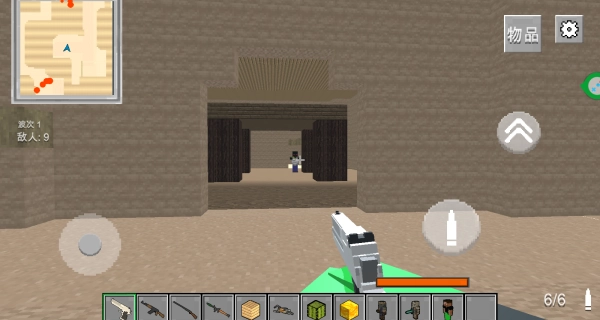 1、开局先留意左上角的地图标识,借助场景里的墙体、矮台当作掩体,再配合底部道具栏的武器,提前对准远处的敌人。