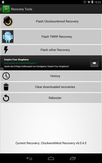Recovery Tools是一款recovery工具,语言为全部英文,但使用还是非常方便的。提root权利后,Recovery Tools安卓版可支持FlashClockworkmod和Flash TWRP,使用前最好将重要数据备份到个人电脑保存。