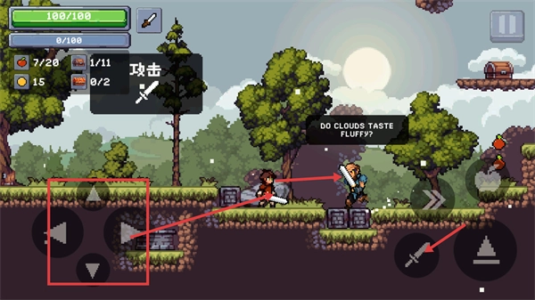 2、通过操控左侧方向按钮来控制角色移动,当靠近敌人时点击右侧的【攻击】按钮发起攻击,击败敌人即可推进游戏进程。