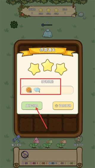 4、完成【恭喜通关】后,点击【直接领取】可获得【65】金币及道具奖励,也可选择【双倍获得】来额外获取奖励。