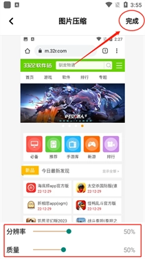 3、接着在设置好【分辨率】与【质量】这两项后,点击【完成】按钮就可以了。