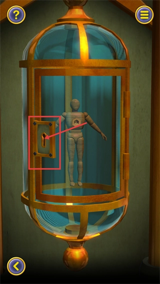 进入关卡后,能看到装着木偶的容器上有锁孔,得找到对应的钥匙道具才能打开这个容器。
