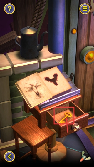 3、在场景里的桌子抽屉中,拾取【黄色钥匙】,这个道具是解锁容器锁孔的关键物品。