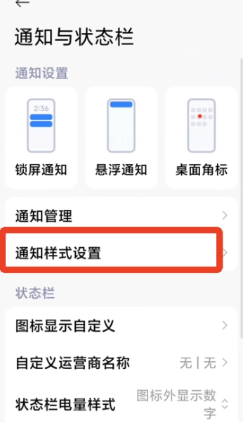 6、进入手机的设置界面后,首先找到【通知与状态栏】选项,接着点击其中的【通知样式与设置】。