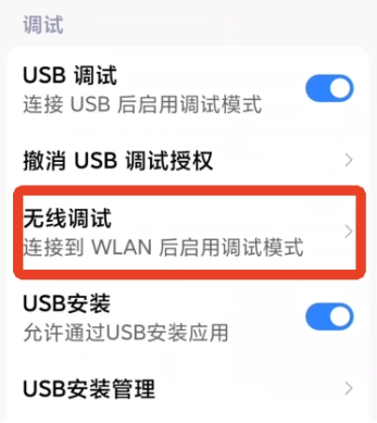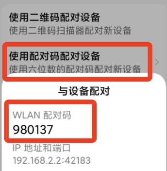 13、点击【无线调试】选项并开启该功能,接着点击【使用配对码配对设备】,此时会弹出WLAN配对码,随后下拉状态栏查看即可。