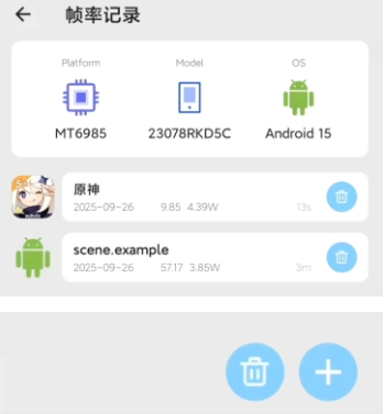 23、完成帧率测试后,点击【帧率记录】选项,即可查看刚才记录下的帧率数据。