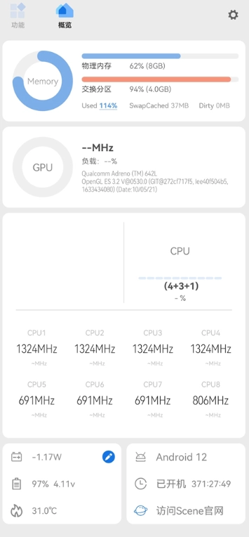 现在终于可以实时查看CPU的调度状态和温度变化了,玩游戏时开启悬浮窗功能用起来特别顺手,调整了CPU大核的频率之后,设备发热的情况有了显著的好转。