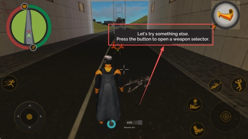 4、选择武器:按下开启武器选择器的按钮,试着用不同的武器参与战斗。