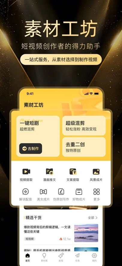「素材工坊」——视频创作的得力加速器,为你解锁无限创意,让效率成倍提升。无论是自媒体从业者、视频博主还是营销人员,都能在这里一站式满足多样化的创作需求。从素材挑选到视频剪辑,全流程为你的创作保驾护航。我们专注于提升内容品质与创作效率,让原创视频的制作过程变得轻松又高效。