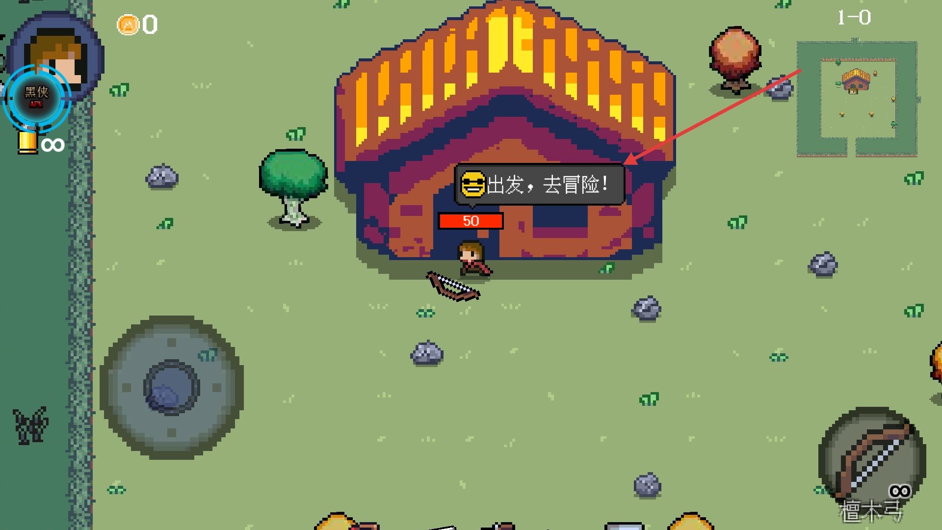 1、进入游戏后点击【出发,去冒险!】按钮,消耗50金币开启冒险之旅,即可快速进入核心战斗环节。
