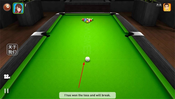 4、进入台球对局界面后,按照界面提示来操控白球,随后就可以开始进行击球操作了。