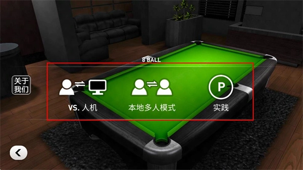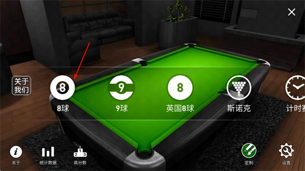 1、在软件界面中点击8球选项,即可进入8球模式的玩法选择页面。