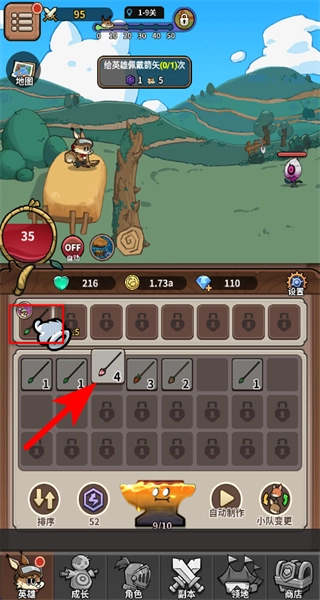 4、点击武器装备栏里的箭矢槽位,把制作完成的箭矢装备到对应的位置上,这是为战斗做准备的必要步骤,只有装备好箭矢,才能正常进行后续的战斗玩法,推动游戏进度。