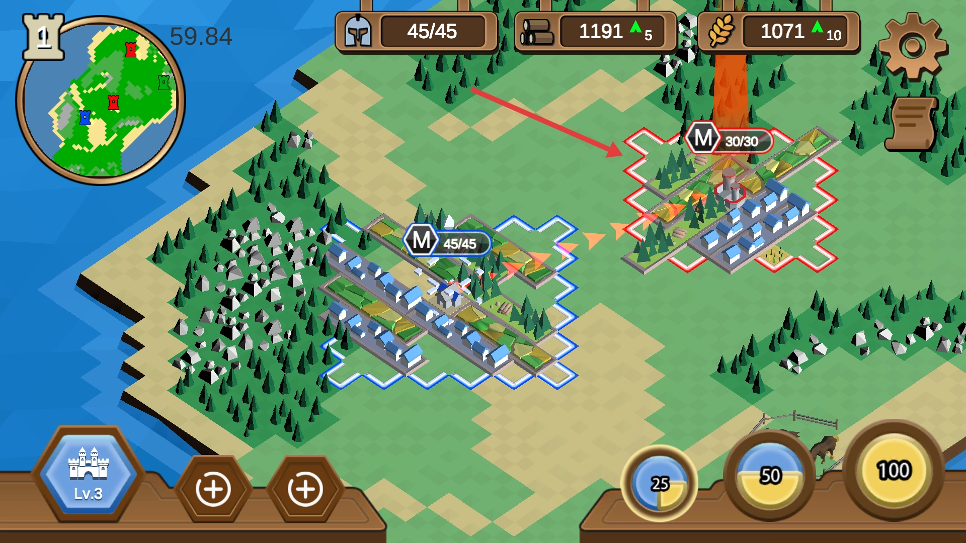 调派训练有素的士兵,攻克敌方城池,掠夺资源来拓展自身的势力版图。