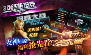 下载、登录《3D终极坦克2》,首先映入眼帘的就是上图中的金发美女,十足的女神范儿有木有?!正如女神所说:“没有强大的战力,怎能战胜敌人!”游戏中的第一波新手大礼来袭,坦克、金币、血包、护甲等等数不完的神秘礼物要靠各位玩家的运气随机抽取哦!