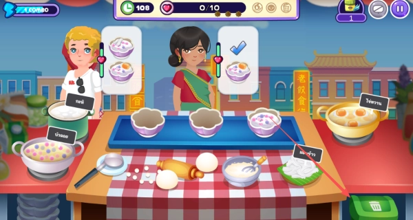 2、依照趣味模拟的操作流程,一步步完成原料处理、造型塑造、烹煮制作以及装饰点缀,精准还原地道泰式甜点的每一处制作细节。