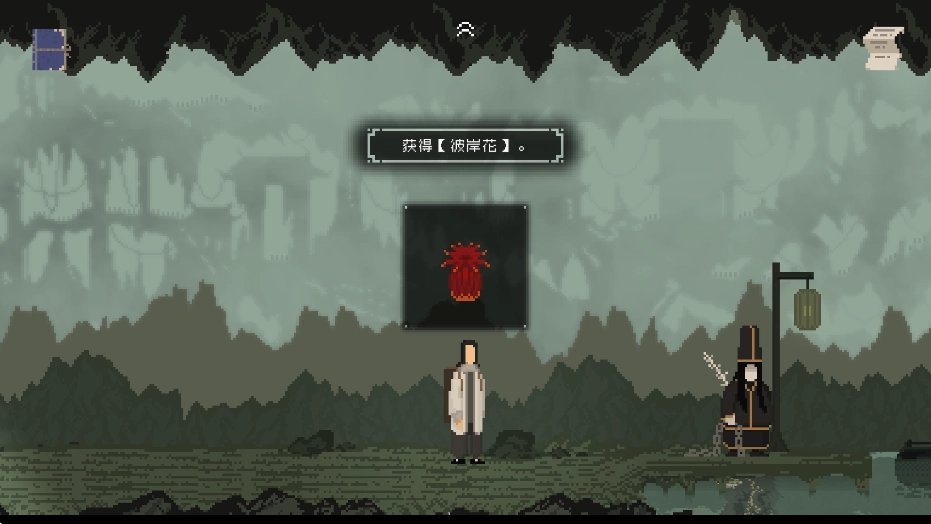 1.开场剧情后,往右走到河边,拾取【彼岸花】。