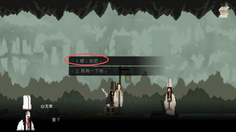 2.和船上的【白无常】对话,选择【嗯,走吧】。
