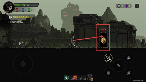 4、控制角色接近带有徽章标识的门,继续推进【见习鸭卫的结业测验-前进并消灭敌人】这一任务,同时要留意【56/120-生命值】的状态,及时进行恢复。