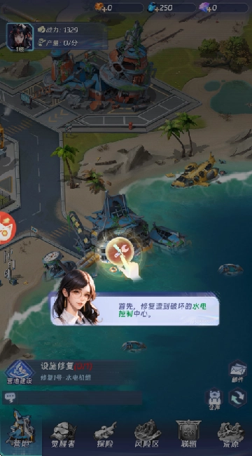 2、开启主线任务,能让你快速熟悉游戏的基本玩法,第一步是修复主控中心。