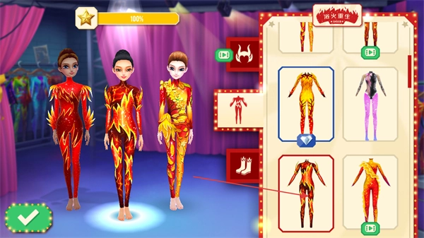 2、在装扮界面挑选对应主题的服装,搭配妥当后点击确认,即可进入演出环节。