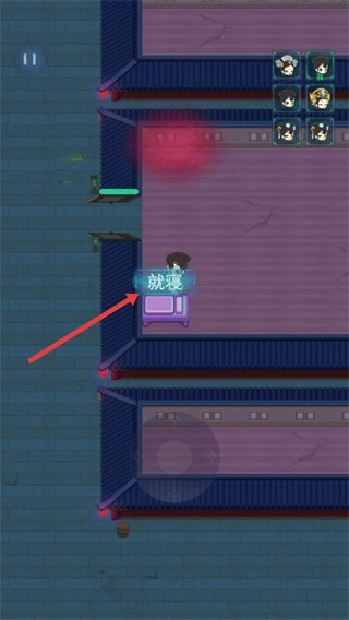 2、进入游戏后,长按方框内的【虚拟按键】来操控角色,需要在倒计时结束前找到床铺。