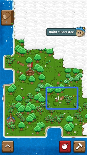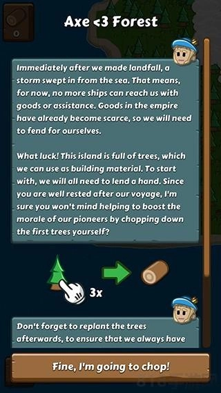 1、点击树木和果树,可进行砍伐和获取果实。